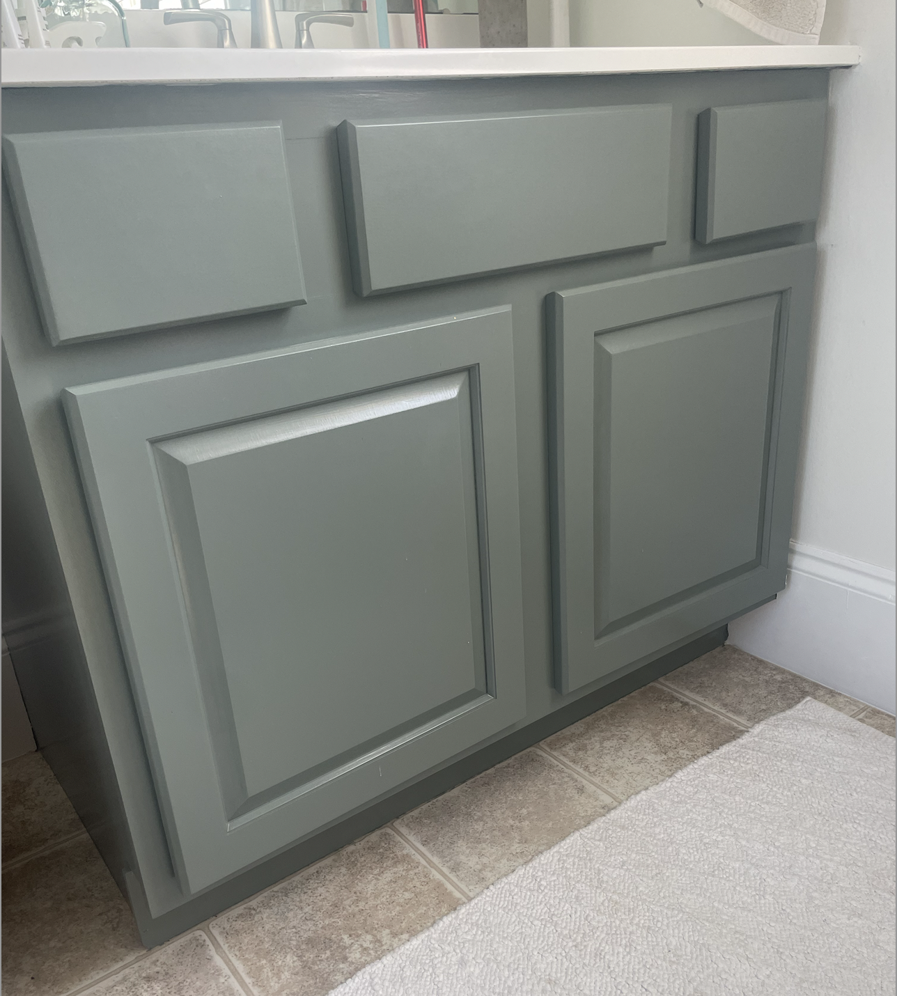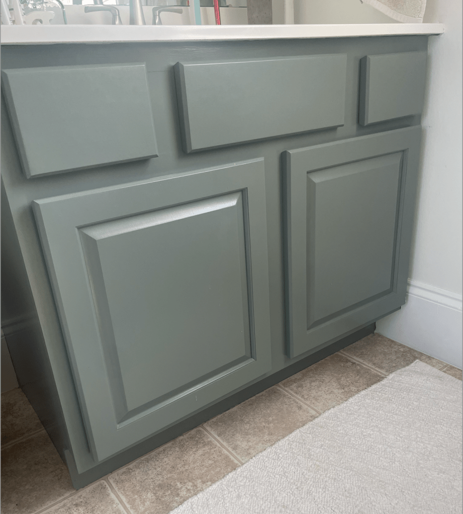 We recently repainting our bathroom vanity from the an early 2000’s color to a nice fresh color to change up our bathroom. We definitely plan to do the same in our girls bathroom (their vanity is shown in the picture to the left) soon since it’s a simple and affordable option.